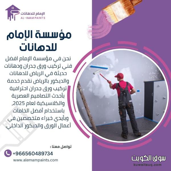 شركة الإمام للدهانات … خيارك الأفضل في الرياض لتنفيذ كافة أعمال دهان الحوائط وترميم المنازل، بالإضافة إلى تركيب ورق الجدران والديكورات الحديثة.