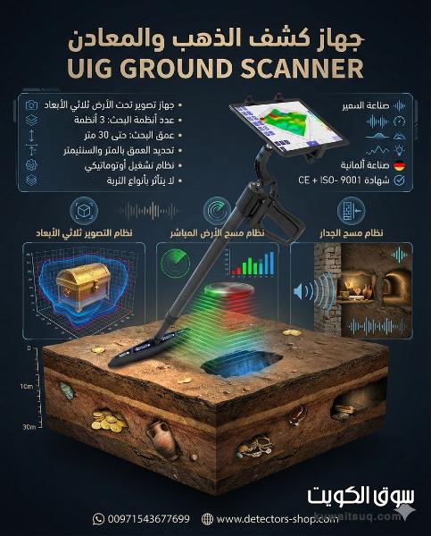 وداعاً للتخمين! جهاز UIG Ground Scanner هو الأداة المثلى التي تمنحك السيطرة الكاملة على عمليات البحث عن الذهب والمعادن والكنوز المدفونة، معتمداً على أقوى تقنيات المسح التصويري ثلاثي الأبعاد. إنه الحل الذي يجمع بين الدقة المتناهية وسهولة الاستخدام.